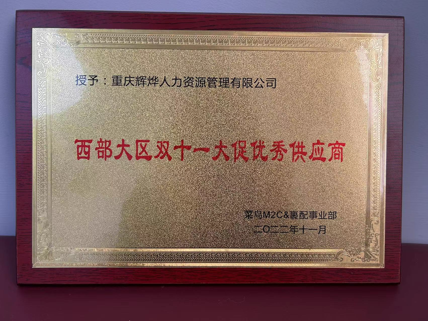 西部大区双十一大促优秀供应商